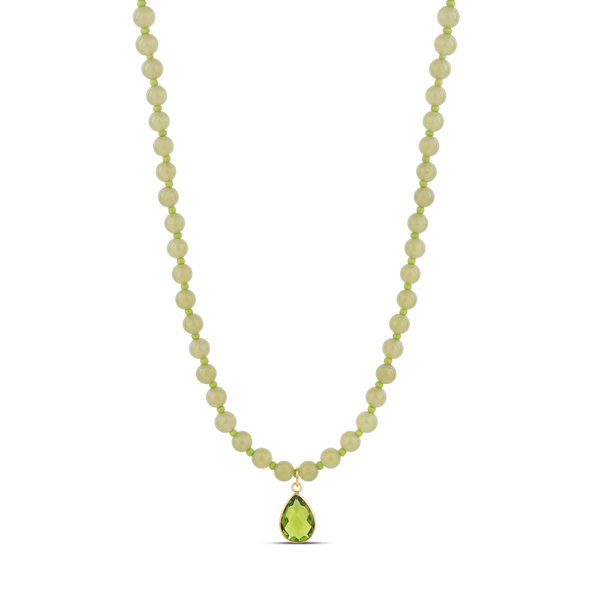 - Hand-selected semi-precious lime jade beads for a fresh, luminous look