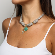 POP UPS X HANNAH B BOAT ROPE GREIGE NECKLACE WITH GREEN HEART & SNAKE
