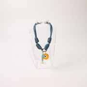 POP UPS X HANNAH B BOAT ROPE STORMY BLUE NECKLACE WITH YELLOW SARDINE & YELLOW EVIL EYE