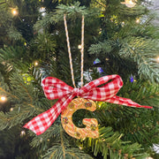 The gold initial charm catches the light beautifully with its crystal accents, while the red gingham bow adds a cozy, farmhouse-chic touch. Whether you're decorating your own tree or gifting to someone special, this ornament becomes a treasured keepsake year after year. It's the kind of detail that makes the holidays feel extra personal.