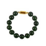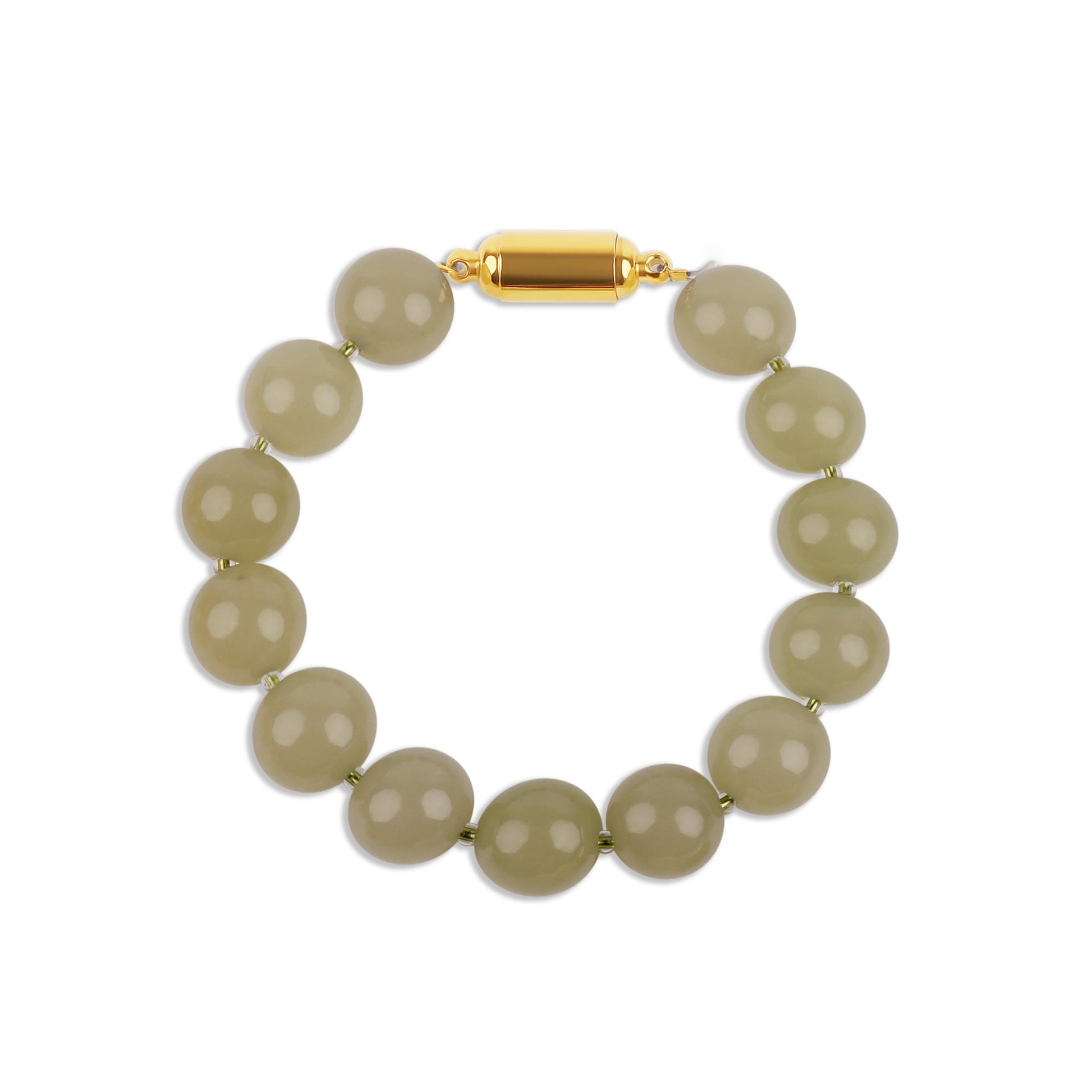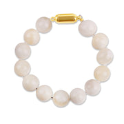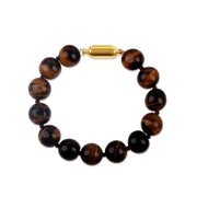 The smooth, polished 12mm beads catch the light beautifully, showcasing natural depth and warmth. Our signature gold magnetic clasp makes it effortless to put on and take off—no fumbling with tiny closures. Whether you're solo or stacking, this bracelet transitions seamlessly from day to night.