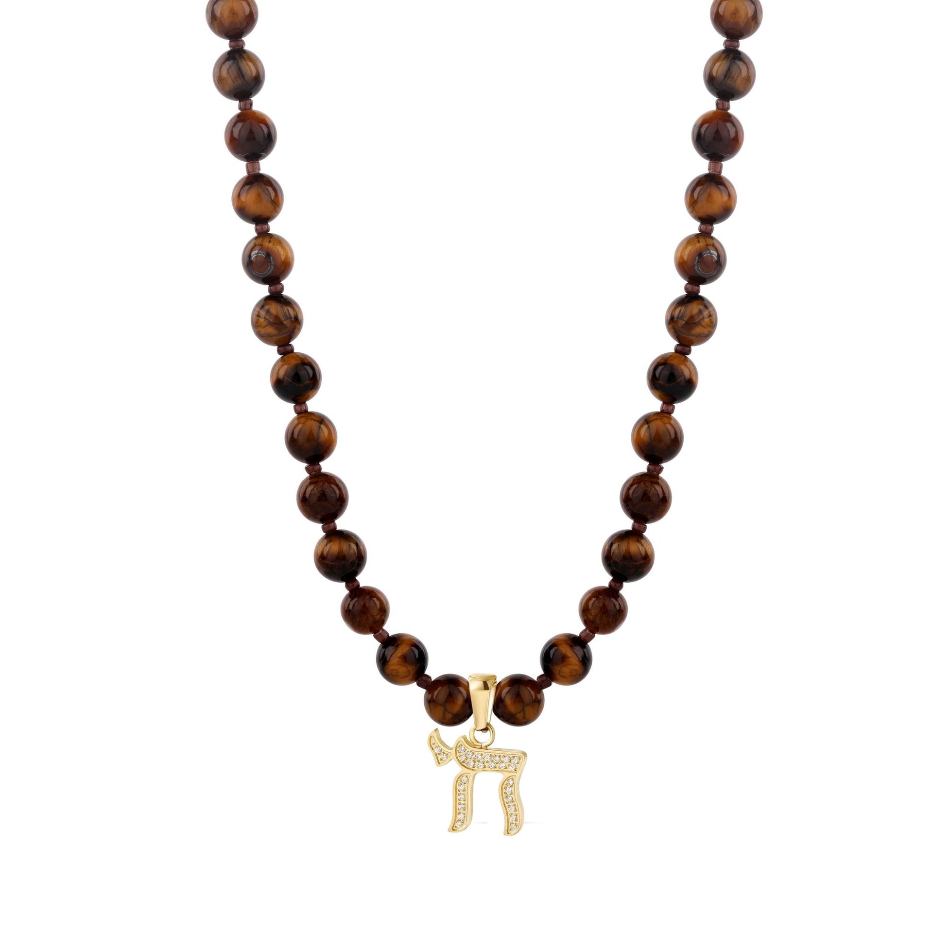 For the fashion-forward mom who values both meaning and style, this Chai Necklace is your new everyday essential. Featuring rich 8mm tiger's eye beads and a gold chai symbol, this necklace adds depth and intention to any look—from casual days to special occasions.