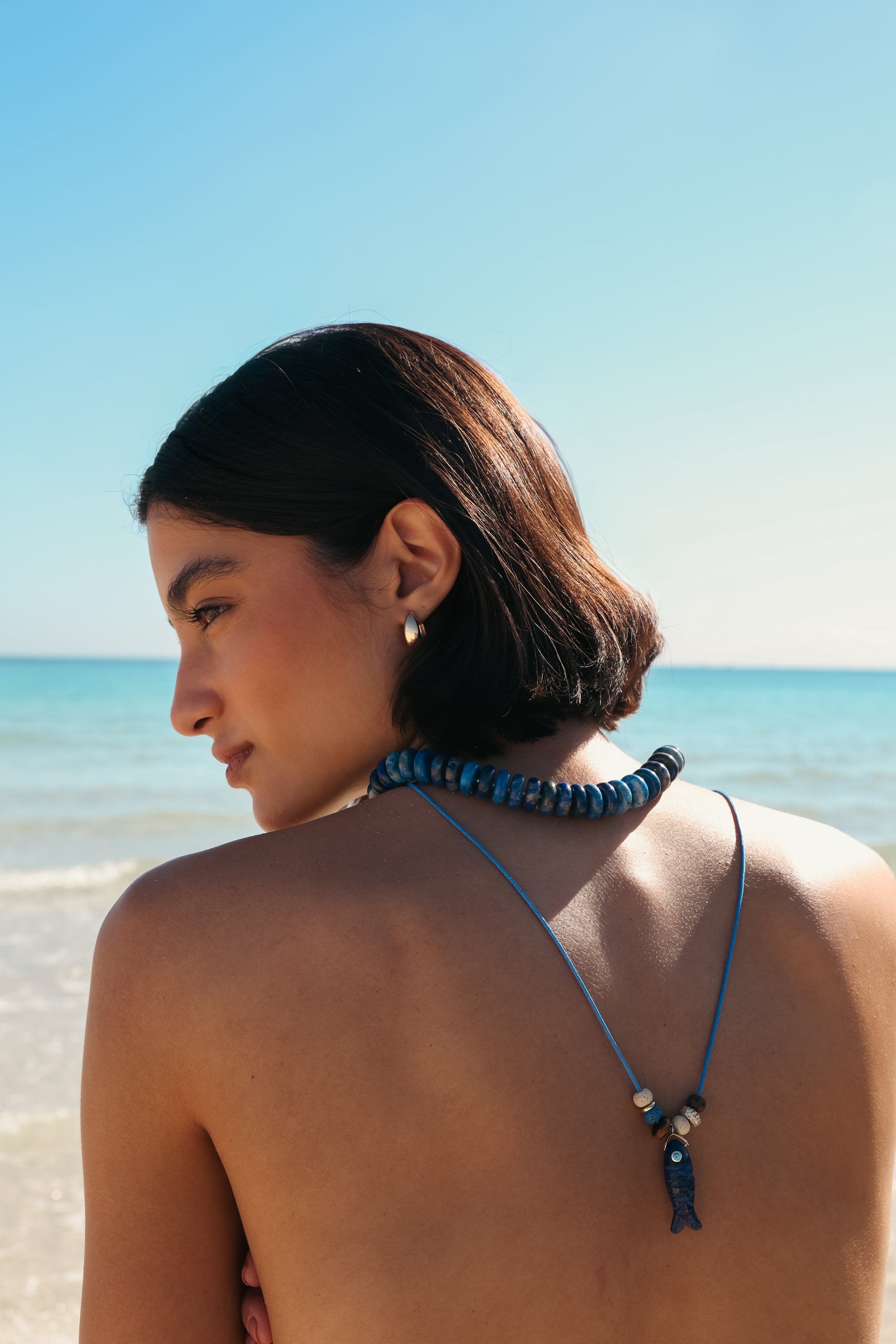 Add a splash of ocean-inspired charm and effortless style to your spring and summer jewelry box—there’s no wrong way to style your Navy Gemstone Choker.
