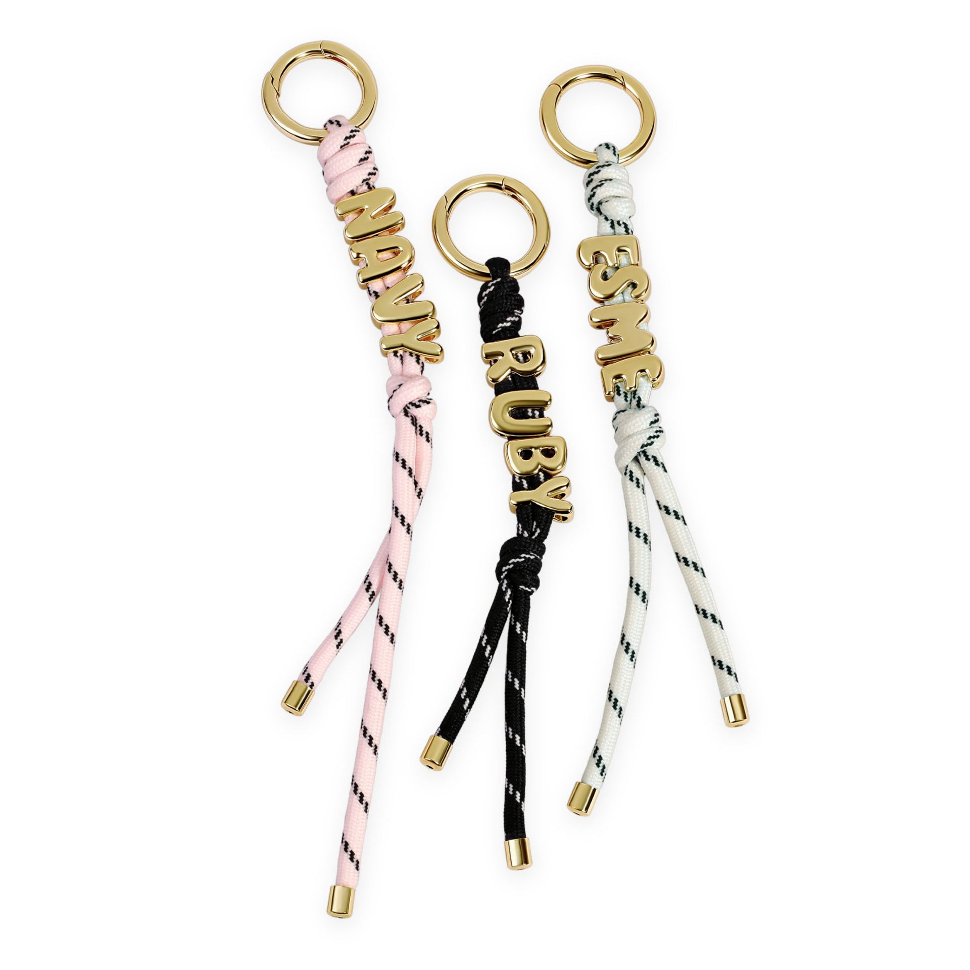 Add a playful, personal touch to your favorite bag with our customizable bag charms. Each charm is crafted with durable, color-pop cord and finished with a luxe gold-tone ring and letter beads—designed to spell out your name, initials, or a word that’s meaningful to you.