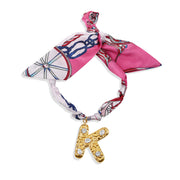 Make a statement that’s uniquely yours. The Silk Statement Initial Necklace is the ultimate fusion of high fashion and personal style, featuring a luxurious printed silk scarf necklace and an oversized, gold-plated initial pendant adorned with hand-set crystals. Designed for those who love bold, eye-catching accessories, this piece is perfect for elevating any outfit—from everyday chic to resort-ready glamour.